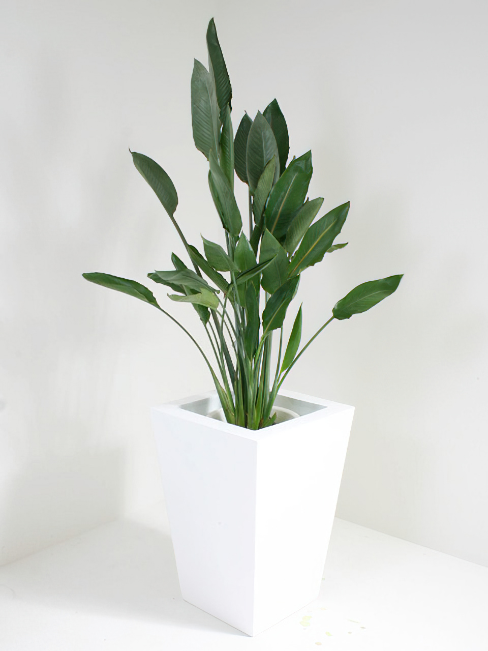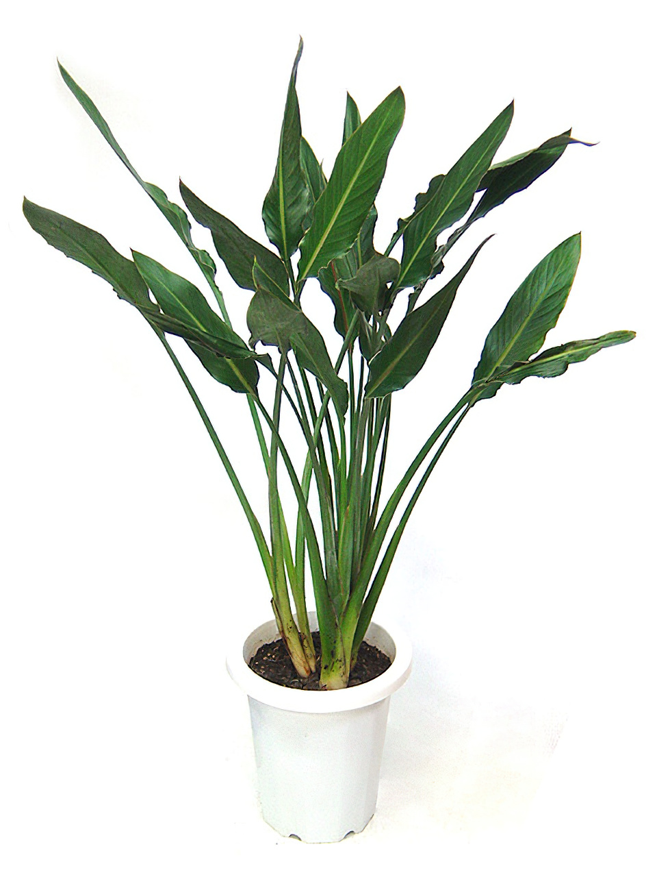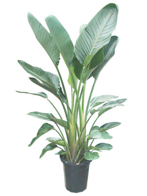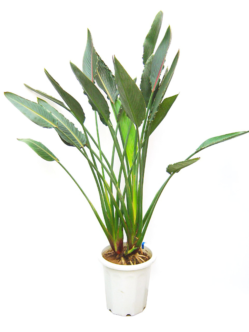 無茎で、高さ1~1.5メートルになる多年草。葉は2列に互生し、葉身は長楕円状披針形で、長さ45cm、幅15cmほど、厚く革質。花茎の先にボート状の仏炎包がつき、その中に数個の花がつく。花は橙色の3枚のがく片と、青~紫色の花弁からなる。花弁のうち2枚は合着し先が尖った舌状となる。他の1枚は短い。開花期は主として秋からよく春まで。原産地:南アフリカ。栽培:日のよく当たる所で管理し、冬は5度以上に保温し、潅水を控える。繁殖は株分けによる。