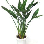 高さ1.5m程度で株立ち状に叢生する。葉は皮質で長い葉柄があり、葉身は鋭尖形で先端は鋭尖形で基部が切形となり、長さ20~30cm、幅4~5cm程度。中央脈が太く、両側の平行脈が数本凹状にへこむ。節間は短い。高さ1.5m程度で株立ち状に叢生する。原産地:西アフリカ。